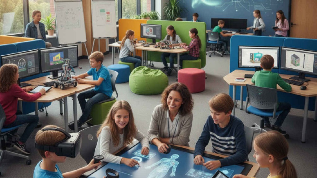 As metodologias ativas representam uma virada de chave significativa na educação, deslocando o foco do professor como detentor do conhecimento para o aluno como protagonista de sua própria jornada de aprendizagem. Modelos como a sala de aula invertida (flipped classroom), aprendizado baseado em projetos (Project-Based Learning – PBL) e gamificação transformam o ambiente de ensino em um espaço dinâmico e interativo. Nesse contexto, os estudantes não são meros receptores passivos, mas sim exploradores, solucionadores de problemas e criadores, desenvolvendo habilidades essenciais para a vida e o mercado de trabalho, como colaboração, comunicação e pensamento crítico.